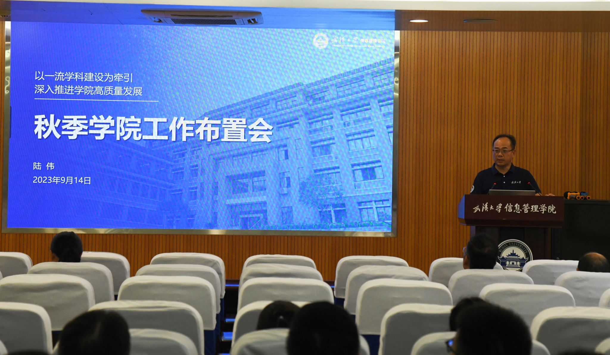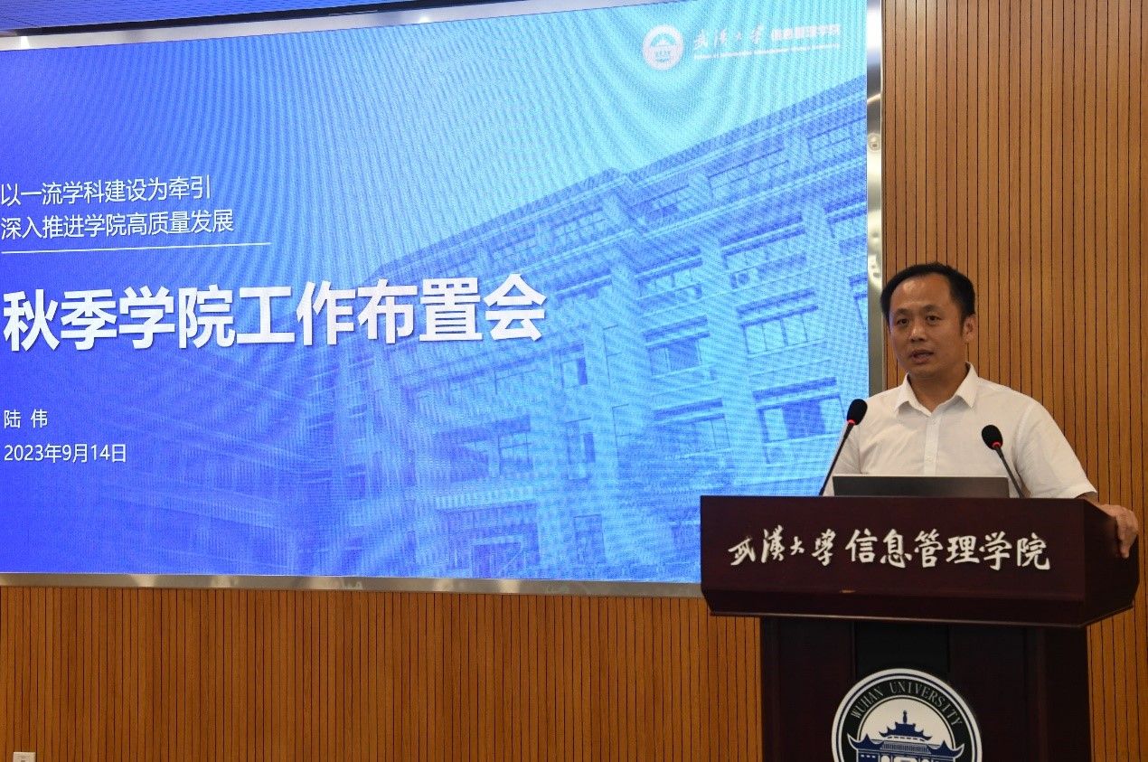 会上,陆伟总结了上半年公司工作,传达了公司秋季干部培训班会以及第四次经理联席会议精神,布置了公司下半年重点工作。他指出,上半年,全院上下紧紧围绕公司中心工作,认真落实年度工作任务,党的建设、团队建设、人才队伍建设、科学研究、人才培养、对内对外合作交流等各项工作卓有成效。针对下半年重点工作,他提出,一要以党建引领和保障公司事业高质量发展,高质量开展130周年校庆信管系列活动和出版科学系40周年活动,二要继续坚持人才强院战略,大力推动有组织科研,不断拓展资源,促进公司可持续发展,三要进一步推动大类招生、大类培养,推进本科教育综合改革,四要进一步推动国际国内交流繁荣发展,重点做好ISKO 2024大会筹备工作。他希望,全院教职工强化责任担当、树立危机意识,充分发挥自身优势,开拓进取、笃行不怠,以公司高质量发展的新作为新成效为建校130周年献礼。