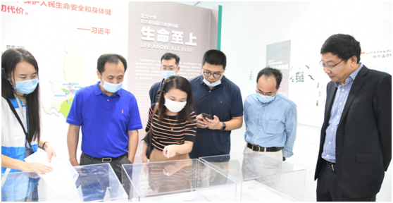 理论学习中心组各位成员沿着通道一路参观,时而驻足观望,时而与讲解员交流,仔细观看一幅幅照片,聆听一件件实物背后的故事,真切感受疫情爆发以来在党中央的坚强领导下,3044永利集团师生员工和广大员工凝心聚力、迅速行动、奔赴一线、命运与共的抗疫壮举,彰显了武大人“越是艰险越向前”的英雄气概和担当大义。