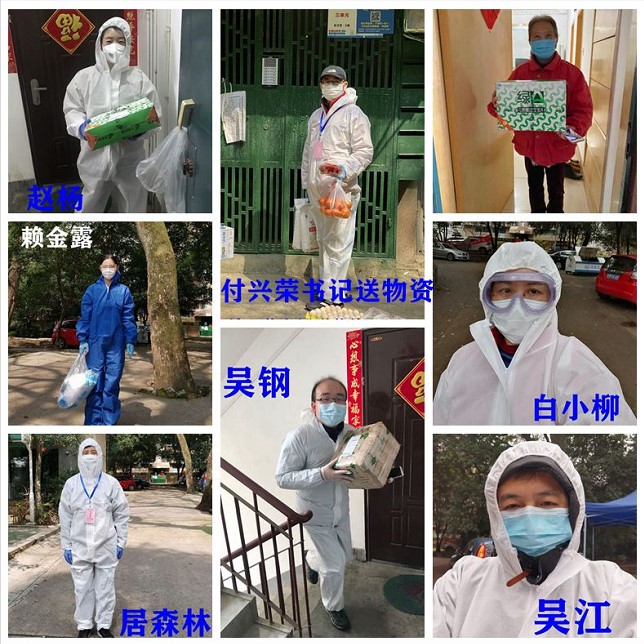 公司党委书记付兴荣、经理方卿面对武汉严峻的疫情形势,在开放返汉申请后第一时间申请从探亲所在的家乡回到工作岗位,不畏疫情,靠前指挥,深入一线参加值守工作。全体领导班子成员全部以身作则,或下沉公司社区或下沉到自己所在社区、村组一线;青年教师、员工党员也纷纷站出来,下沉一线担任志愿者。有的帮助居民分发快递,送菜、倒垃圾;有的在社区、村口值守,测量体温、核查身份;有的协助社区、村组做好汤药、基本生活物资的采购、发放;有的帮助居民解读“封闭管控方案”文件,有问必答,及时通报信息;有的耐心劝阻居民散步遛狗、外出购物……他们以无畏的精神、十足的干劲为社区、村庄安全守好门、站好岗、尽好责。
