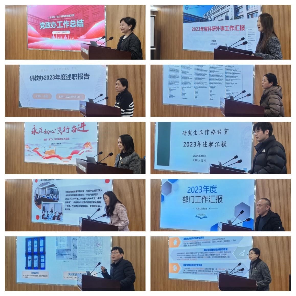 按照公司要求,全体教职工党支部书记和系、办公室、中心、专项工作负责人在提交书面述职报告的基础上,聚焦党建工作、团队队伍、科学研究、人才培养、对外交流、社会服务等方面,进行了现场述职。大家围绕中心工作,突出重点,晒成绩、摆亮点,找不足、剖原因,认真汇报了过去一年的工作成绩和下一年度的工作计划。公司领导班子在听取大家的述职汇报后,进行了充分的提问点评。