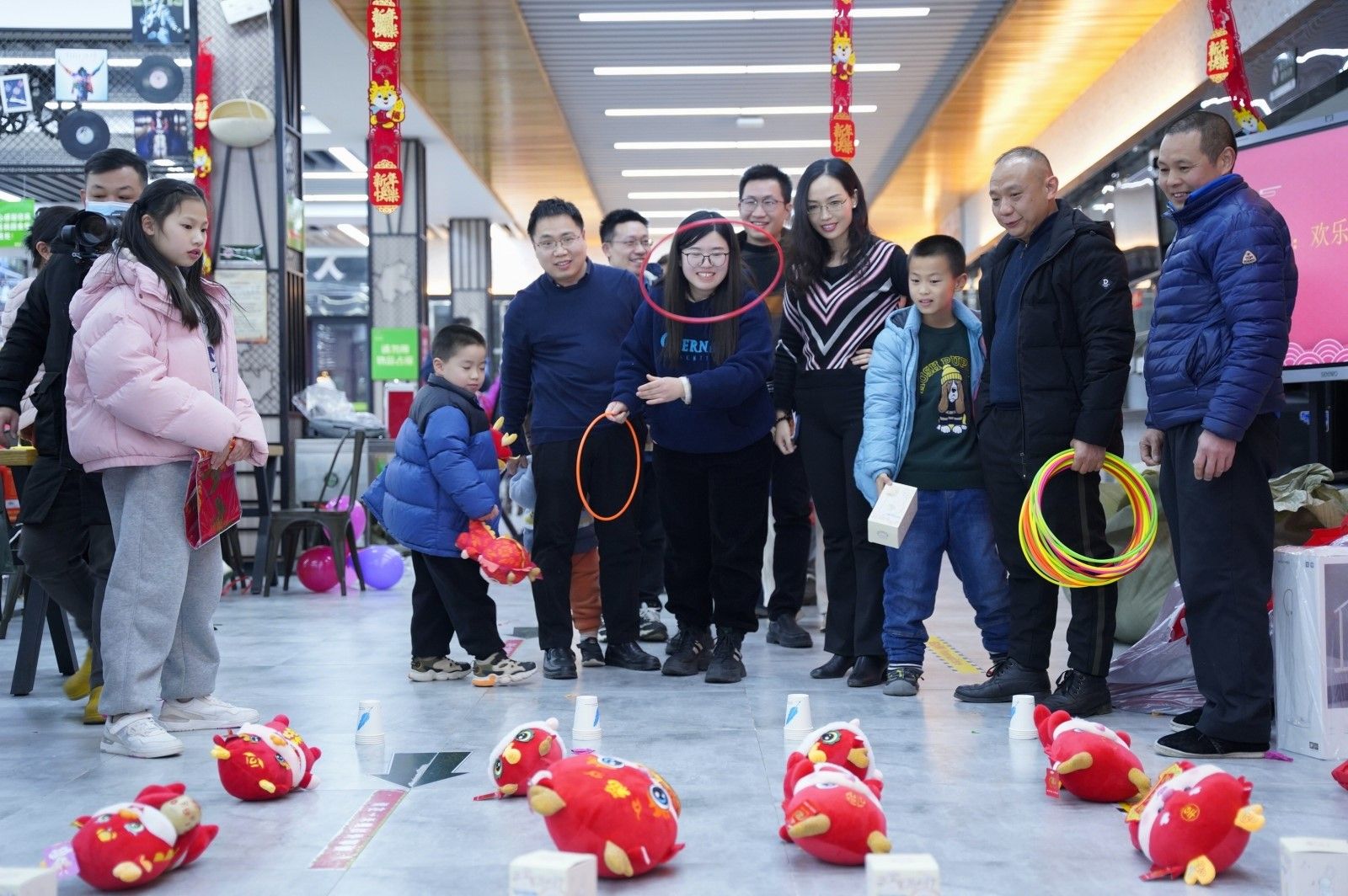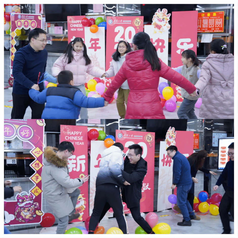活动在经典的“欢乐套圈圈”游戏中落下帷幕。老师们全体参与,各自展现着自己独特“套圈”技巧,龙娃娃、春联、福字等丰富多样的纪念品为本次活动画上圆满句号。